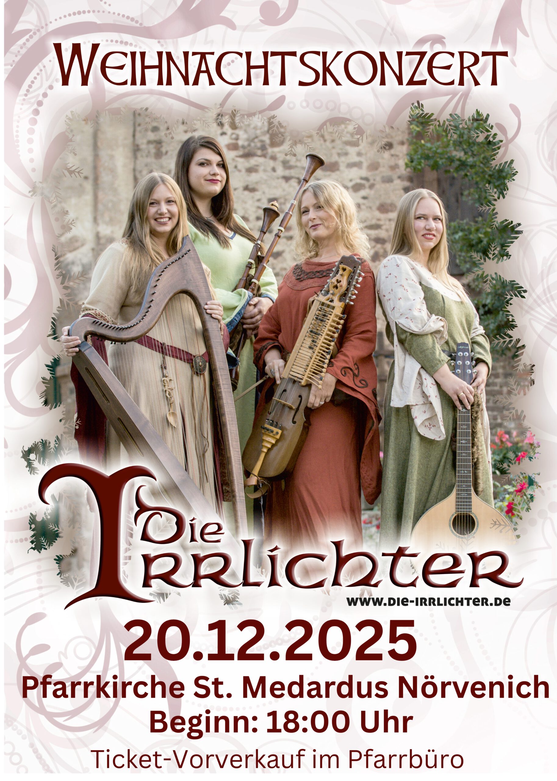 Die Irrlichter präsentieren Weihnachts- und Winterlieder aus neun Jahrhunderten und aus ganz Europa auf historischen Musikinstrumenten. Dieses Programm ist etwas für die ganze Familie! Dabei werden die Musikinstrumente der Engel [...]